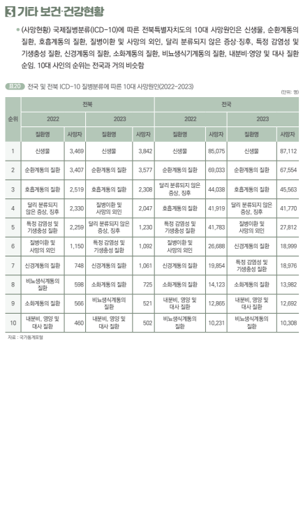 - 기타 자료 : 사망률/사망자 수, 감염병 발생현황, 암질환, 만성질환, 검진실적(전체, 남성, 여성)