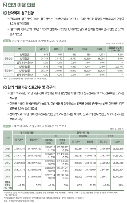 3. 한의 이용 현황 (※ 아래 글자를 누르면 해당되는 분석 자료원으로 이동합니다.)