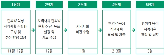( * 각 단계별 계획 수립 시 [한의약 육성 지역계획 수립안내 작성양식(제3장)]을 활용하여 작성하되, 지자체의 현황에 맞추어 일부 양식 변경 가능)